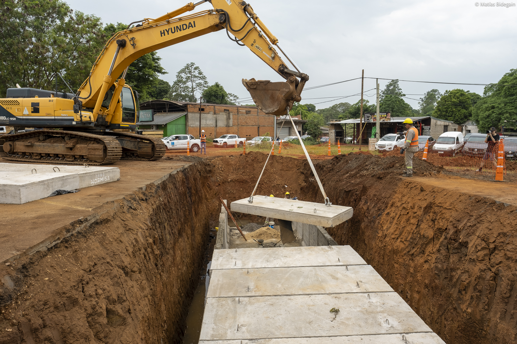 Actualmente, se trabaja en el saneamiento de la Cuenca Nº2 Residencia del Gobernador, específicamente en el Conducto Hummel, donde se emplean dovelas premoldeadas para optimizar los tiempos y reducir el impacto ambiental.