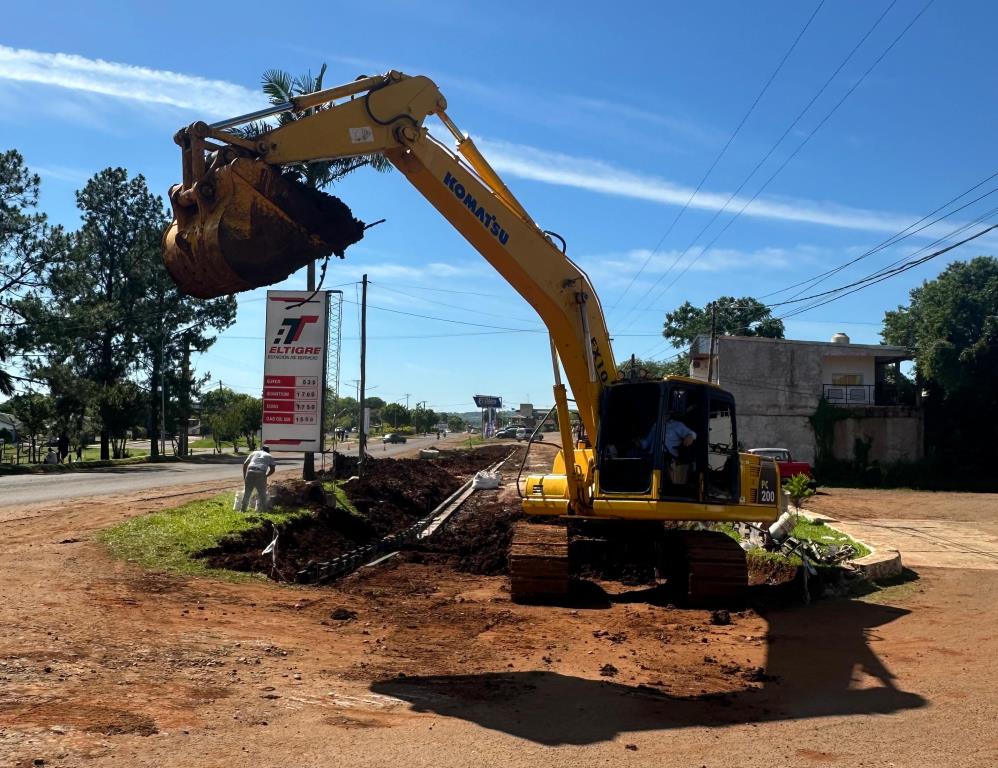 Desde hace algunos días se puede observar el avance de los primeros 400 metros de cordón cuneta en el acceso al centro de la ciudad.