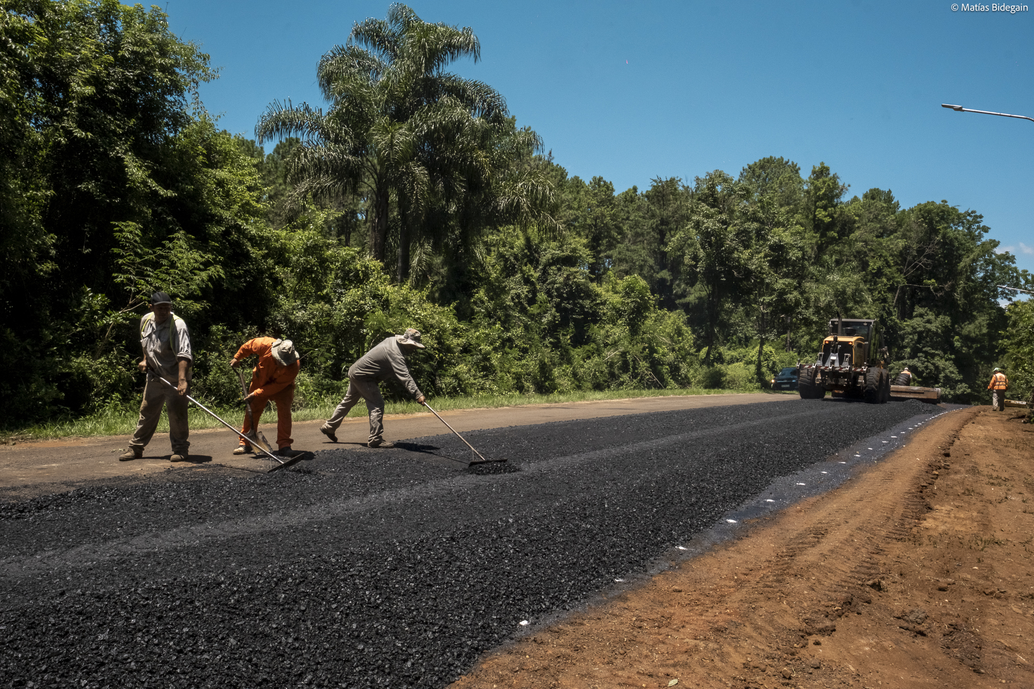 Junto con la Municipalidad Local, que aporta a la tarea, se está llevando adelante la reconstrucción de los sectores más dañados y reponiendo la capa asfáltica en gran parte de los poco más de 2.000 metros del camino de acceso hasta el portal de ingreso a uno de los atractivos turísticos naturales de mayor convocatoria en ese sector de Misiones.