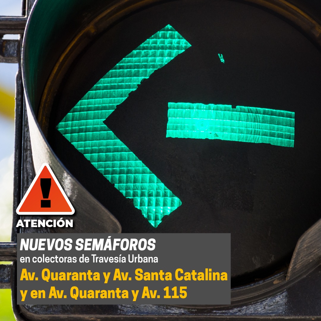 También, a la altura de la intersección Av. Quaranta y Av. Sta. Catalina, los nuevos semáforos ya funcionan en las calles colectoras. Los mismos dotan de seguridad a las maniobras para trasponer la ruta. Desde el lado sur el giro hacia la izquierda para ingresar en la Av. Sta. Catalina se hace desde calzada principal. Mientras que, desde el lado norte, se puede hacer por colectora o por calzada principal.