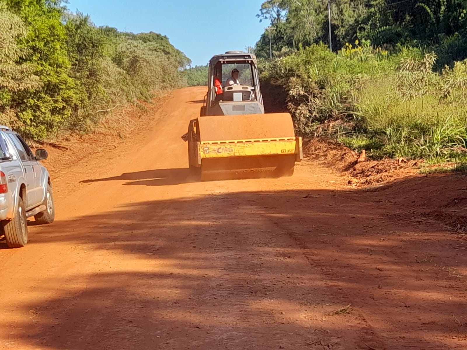 Por otra parte, se continúa con los trabajos en Ruta Provincial N° 8 en el tramo que se utiliza como desvío para vehículos de mayor porte debido a la restricción de uso del puente sobre el arroyo Tabay en la Ruta Provincial N° 7. Se avanza con ensanche de camino, despeje lateral y compactación de calzada.