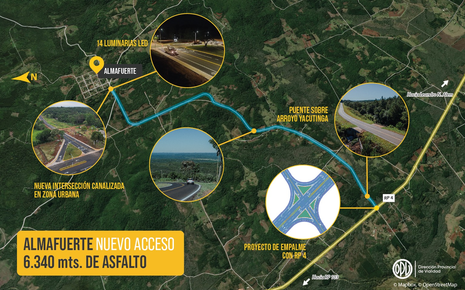 La ansiada obra del acceso pavimentado a Almafuerte, se convirtió en una realidad concreta en este 2023, un camino asfaltado que conecta con la red vial provincial a la localidad, uniéndola a través de la Ruta Provincial Nº 4 con las principales vías de comunicación de Misiones.