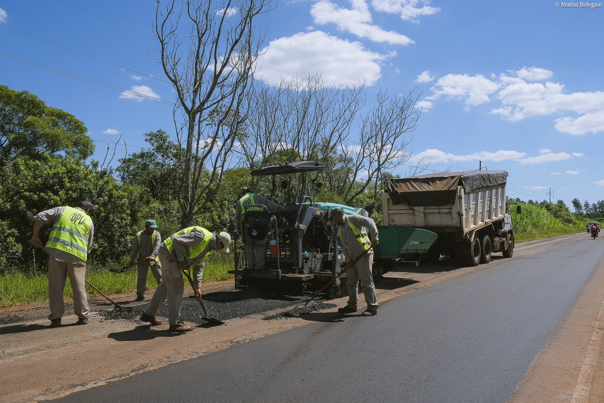 Las obras avanzan desde la zona urbana de la localidad de El Soberbio en sentido hacia San Vicente, donde el asfalto de la RP 13 presentaba baches y deformaciones que requerían intervención.