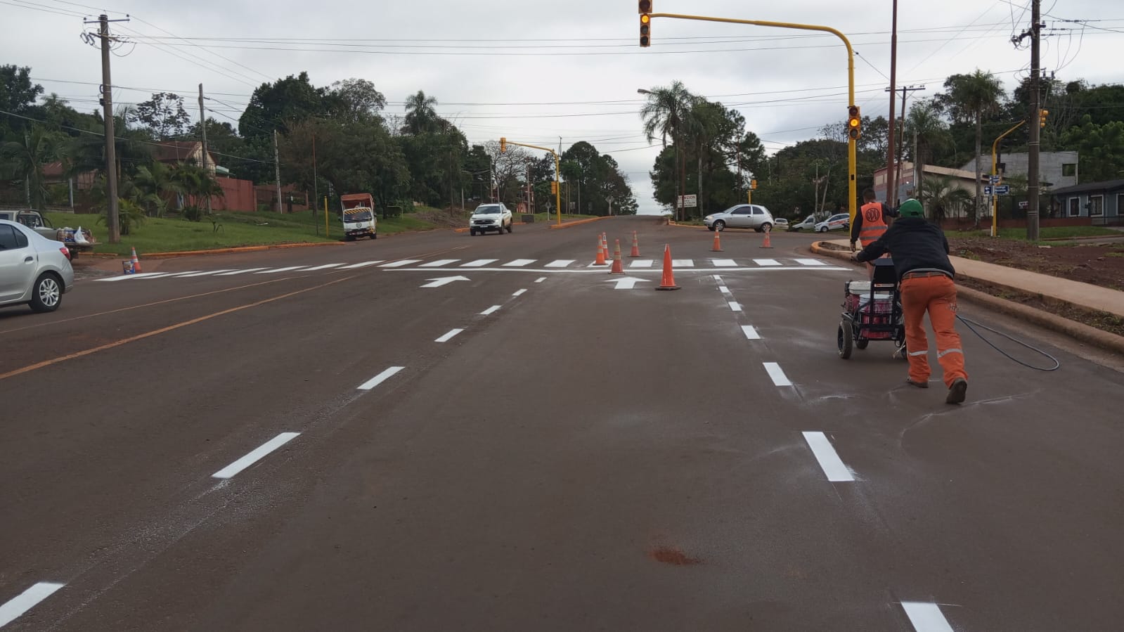 Dentro de las tareas que se ejecutan en permanente colaboración con las administraciones municipales, la Dirección Provincial de Vialidad (DPV) completó trabajos de señalización horizontal en la zona urbana de Oberá.