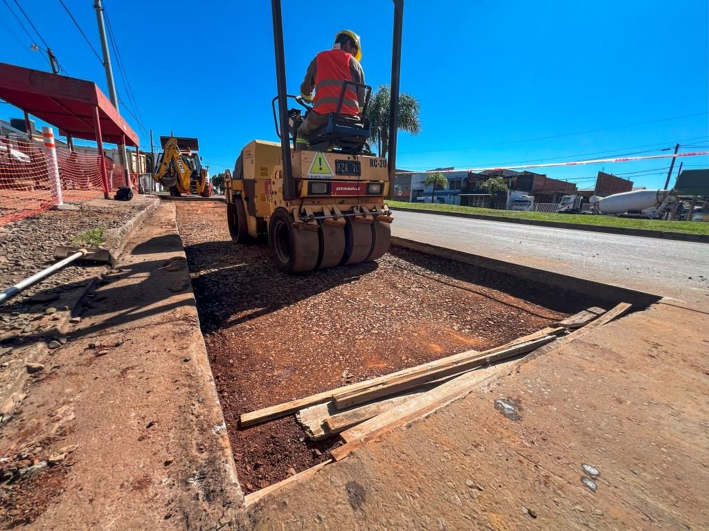 En la calle colectora de la Av. Tulo Llamosas, en sentido Posadas – Garupá, se trabaja en el hormigonado de las dársenas de detención de unidades del transporte público de pasajeros. Contar con estructura de piso de hormigón frente a las paradas de colectivos brinda mayor resistencia y durabilidad a la capa de rodamiento ante el frenado y partida de las unidades de gran peso. El avance de obra se encuentra en inmediaciones de la intersección con la Av. Domínguez.