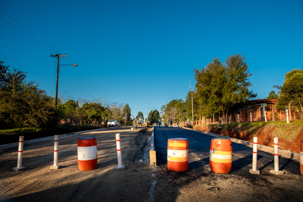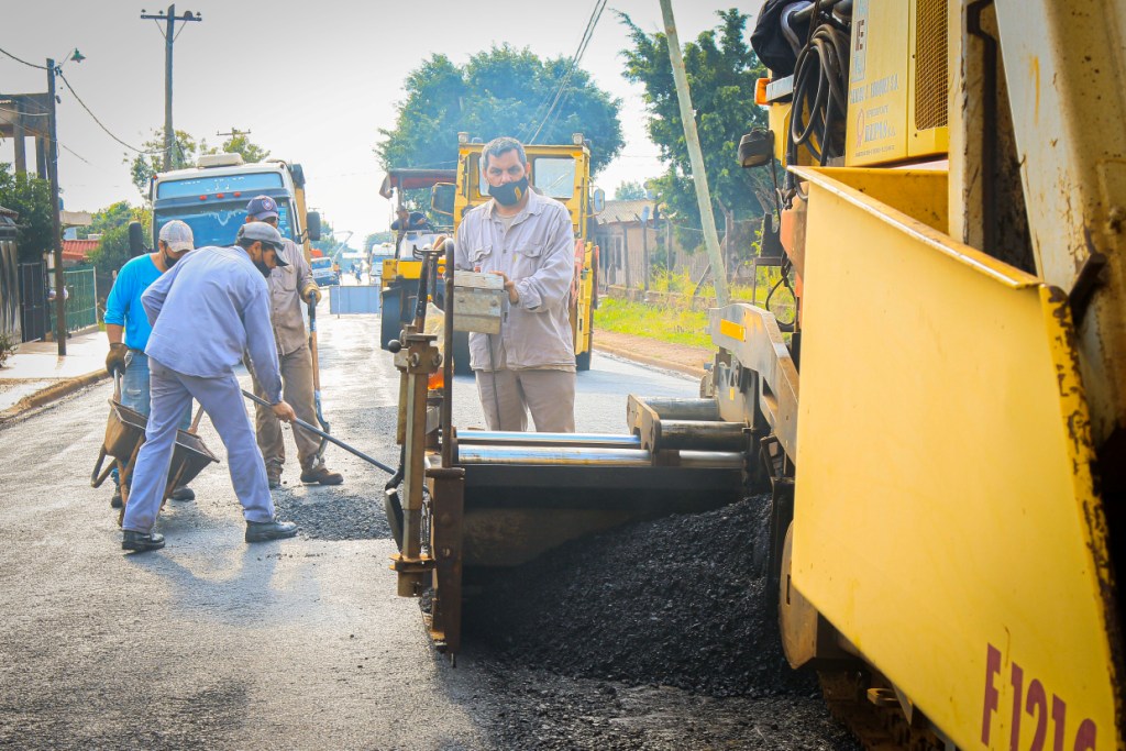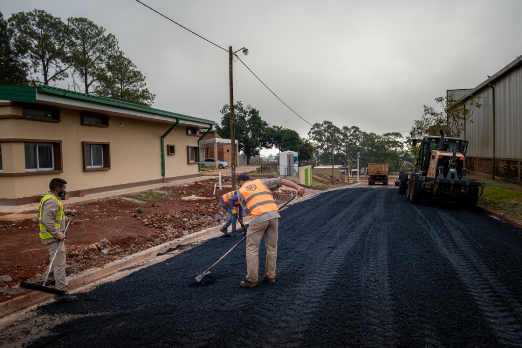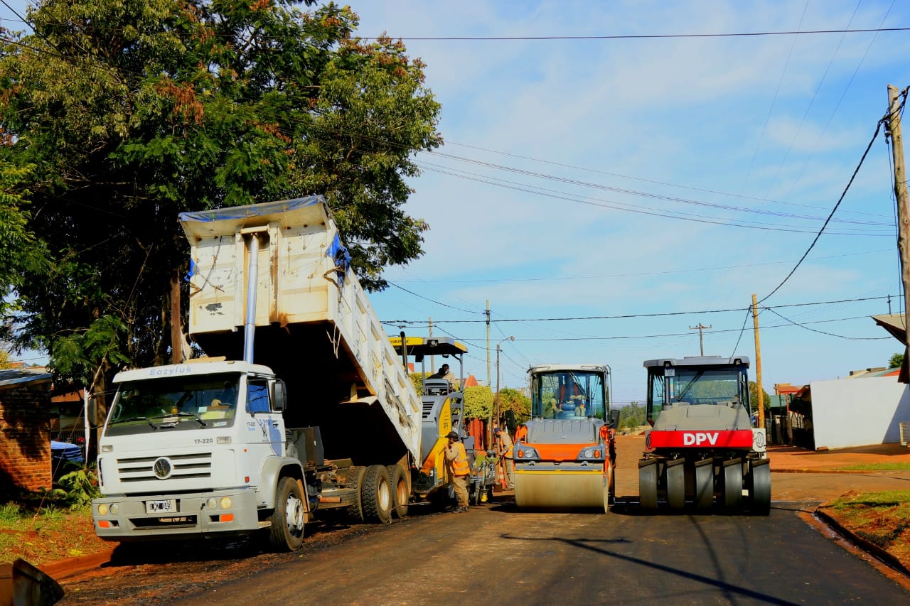 Fachinal ya tiene sus primeras cuadras asfaltadas, Vialidad de Misiones trabaja en la zona urbana