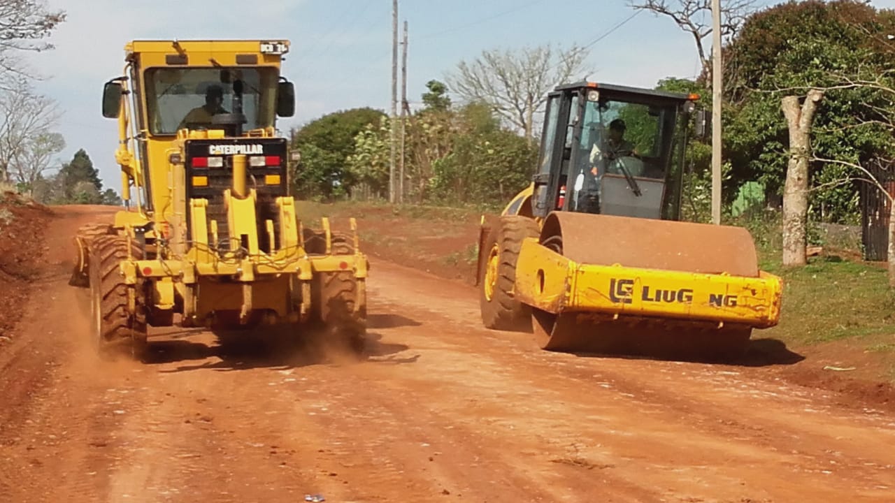 Tareas de conservación del camino de acceso a colonia “El Chatón” municipio de Gobernador López. El nexo vial de 13 km de longitud conecta la RN 14 con el casco urbano.