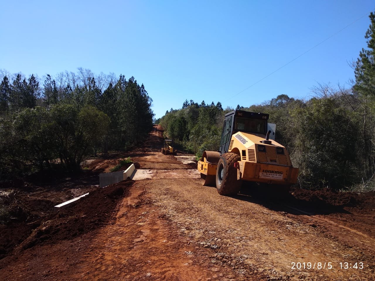 Puente sobre arroyo Los Toros, que se ejecuta en el municipio de Colonia Guaraní. Se dispone a colocar vigas de hormigón que conforman el tablero principal de la obra.
