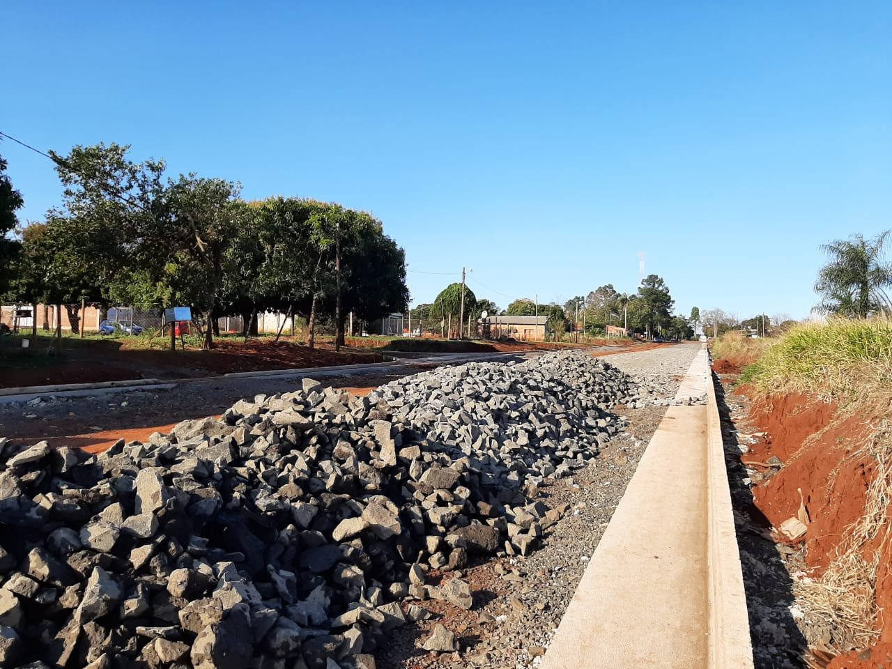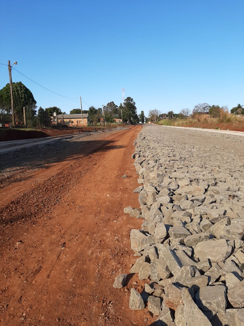 En avenida Martín Fierro entre avenidas Jauretche y Vivanco, ejecución de base granular. Construcción de cordón cuneta, badenes y desagües.