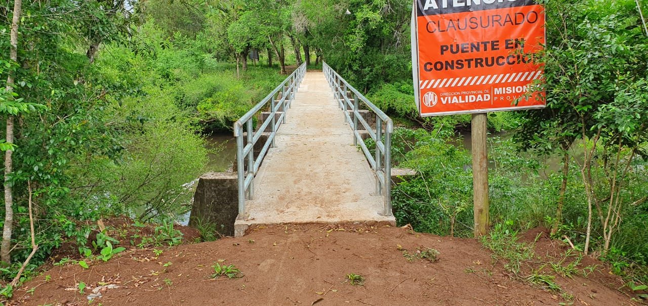 Cambio de tablero en el puente peatonal sobre Aº Garuhapé. Nueva pasarela de 40 mt de largo utilizando viguetas de hormigón y obras complementarias.