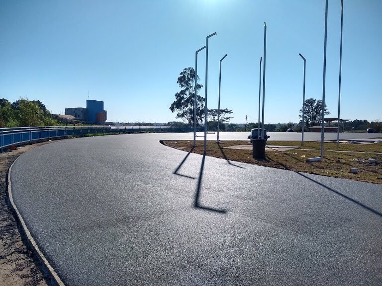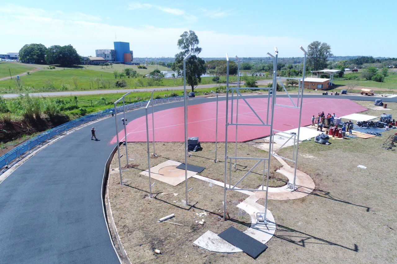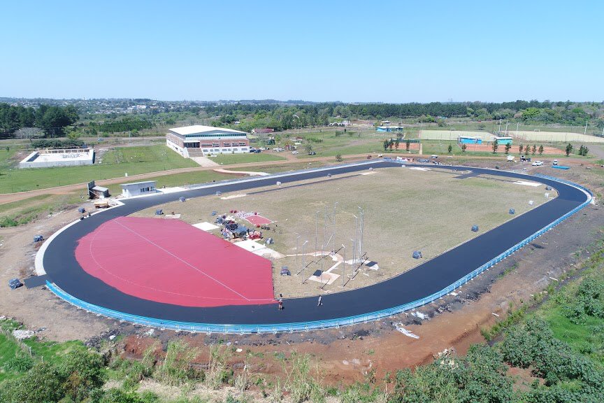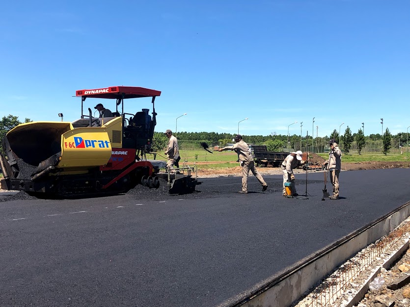 Obras en la pista olímpica de atletismo ubicada en el CePARD en Posadas. Las tareas corresponden a la carpeta asfáltica de nivelación. Movimiento de suelo, desagües, relleno con material rocoso, obra básica, paquete estructural y carpeta asfáltica, con medidas técnicas deportivas específicas para competencias nacionales e internacionales.