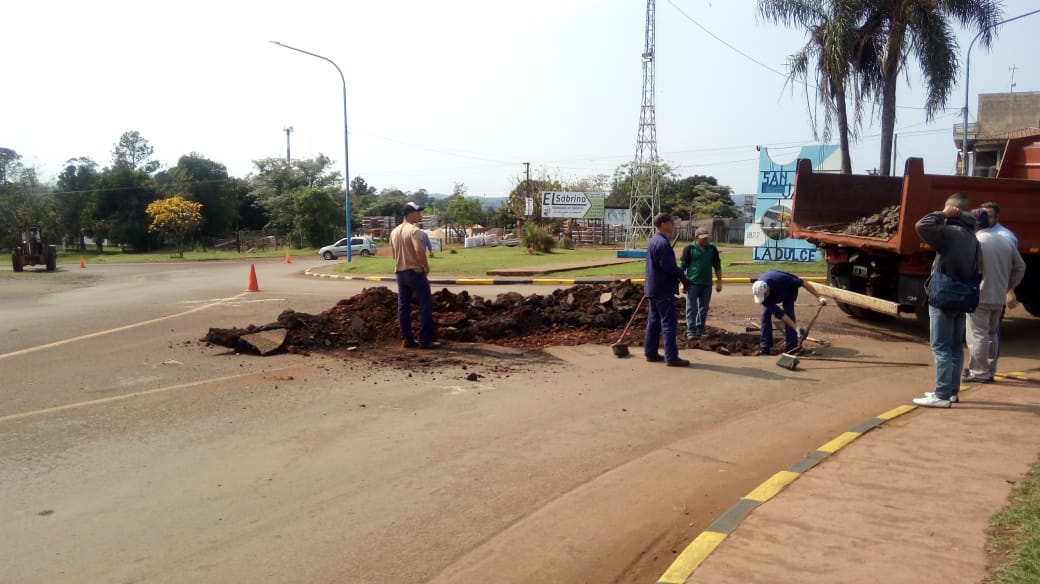 Vialidad y la municipalidad local comparten tareas de bacheo que se realizan en la intersección entre la av. Queirel y la RP Nº 4. Ambas arterias son utilizadas para el acceso vehicular al puerto internacional San Javier – Porto Xavier .