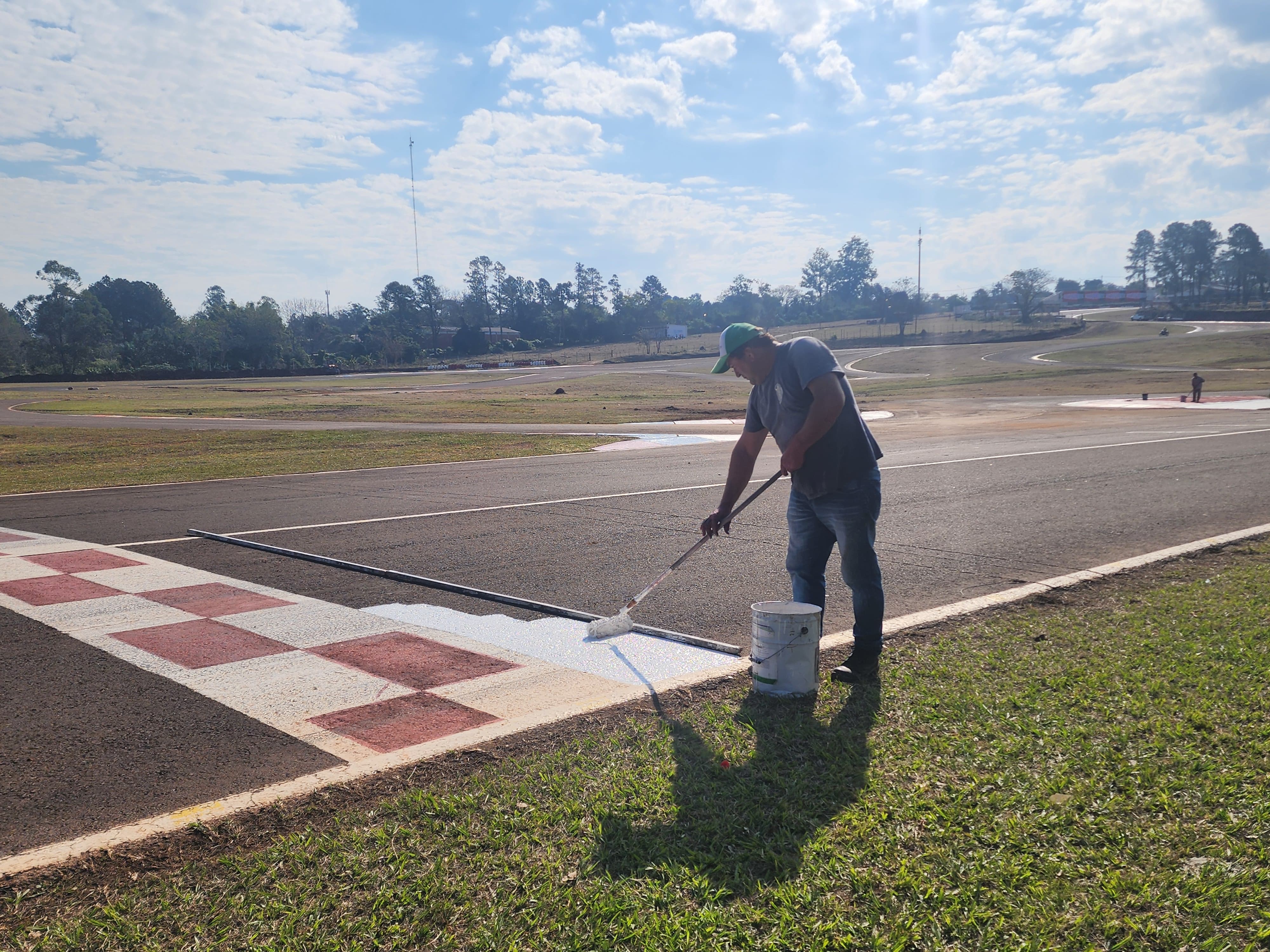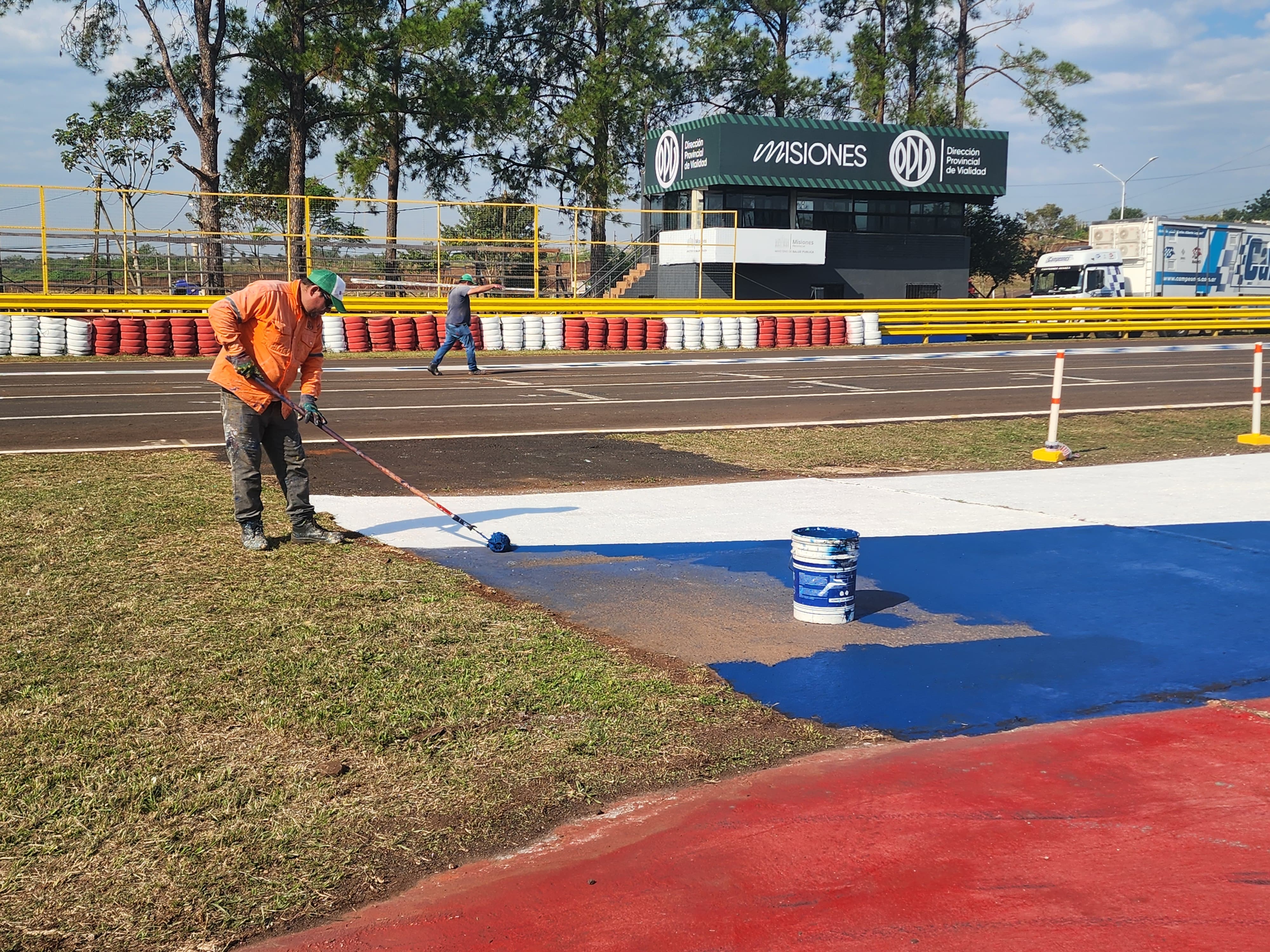 Una vez finalizadas las reparaciones, se avanzó con la pintura para demarcar los diferentes sectores de la pista y otros referidos al aspecto visual durante el espectáculo deportivo.